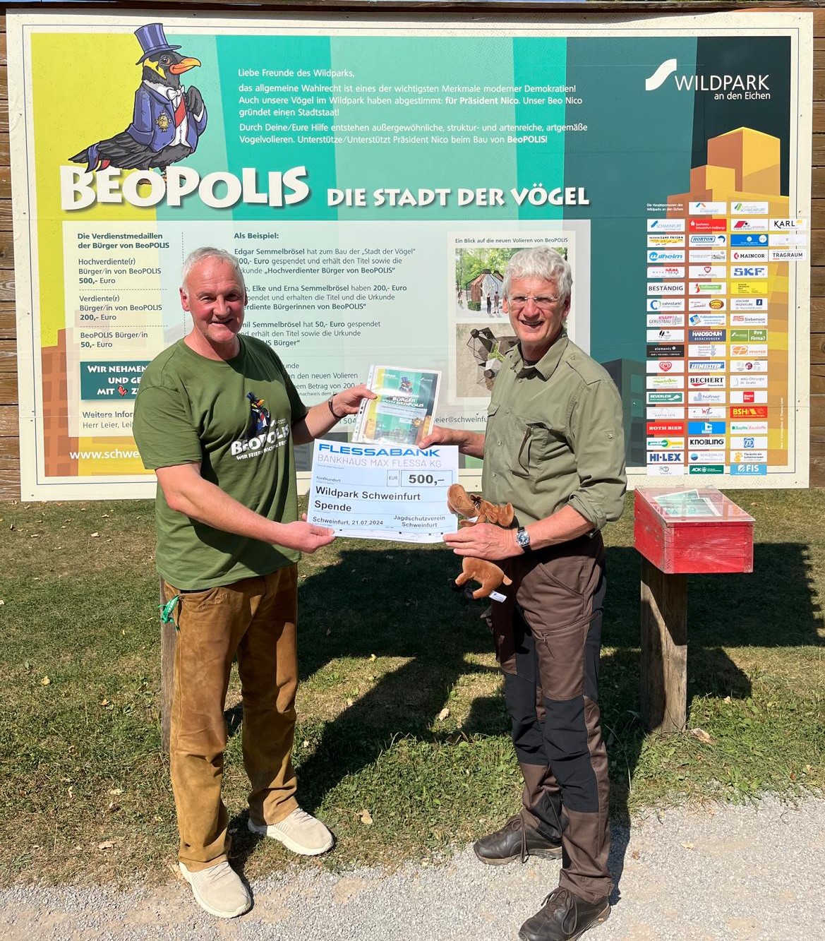 Scheckübergabe durch Dr. Abele an den Wildparkleiter Herrn Leyrer