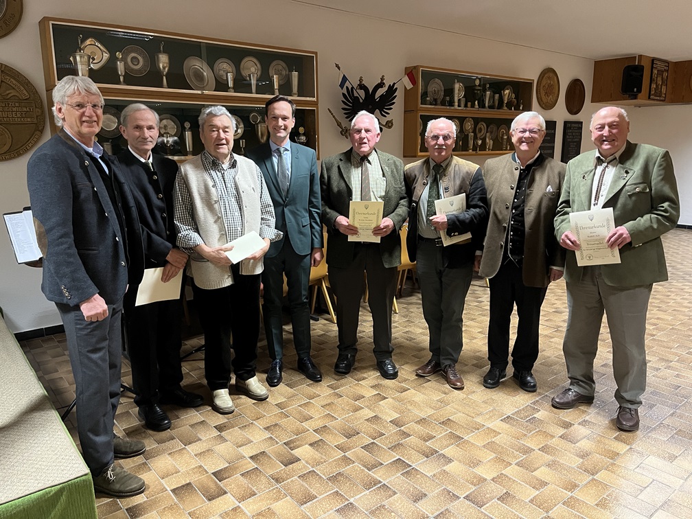 Die Jubilare Engelbert Bonengel (65 Jahre), Lothar Pfeuffer (60 Jahre), Mathias Ritzmann (50 Jahre), Werner Kraus (40 Jahre), Friedrich Pfister (40 Jahre), Christian Keller (25 Jahre) konnten an dem Ehrenabend leider nicht teilnehmen.